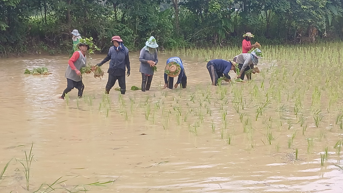 ดำนา วิถีชาวบ้านลูกอีสาน ณ ทุ่งนาพ่อใหญ่ต่อม บ้านหนองทุ่ม ตำบลบ้านหว้า อำเภอเมือง จังหวัดขอนแก่น