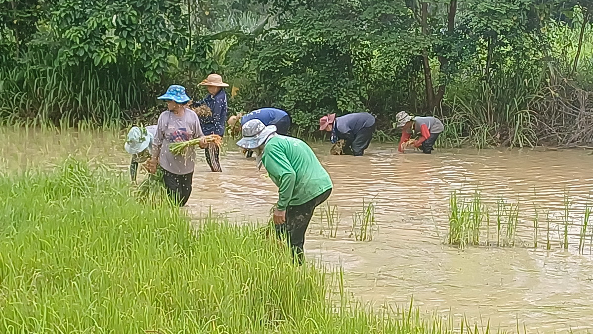 ดำนา วิถีชาวบ้านลูกอีสาน ณ ทุ่งนาพ่อใหญ่ต่อม บ้านหนองทุ่ม ตำบลบ้านหว้า อำเภอเมือง จังหวัดขอนแก่น